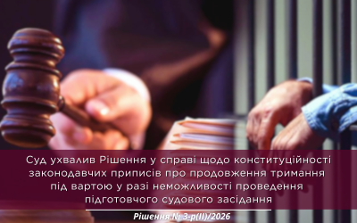 Суд ухвалив Рішення у справі щодо конституційності законодавчих приписів про продовження тримання під вартою у разі неможливості проведення підготовчого судового засідання